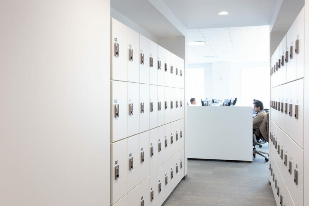 Staff had been using “gym style” temporary lockers with keys at the old location. Employees would place their belongings in an available locker, turn the key, and take the key with them. At break time or at the end of the day, they would use the key to unlock the locker and the key would stay in the lock, indicating the locker’s availability. Because staff got a new key every time they used a locker, the keys were often lost or misplaced. That led to inconvenience and wasted time.