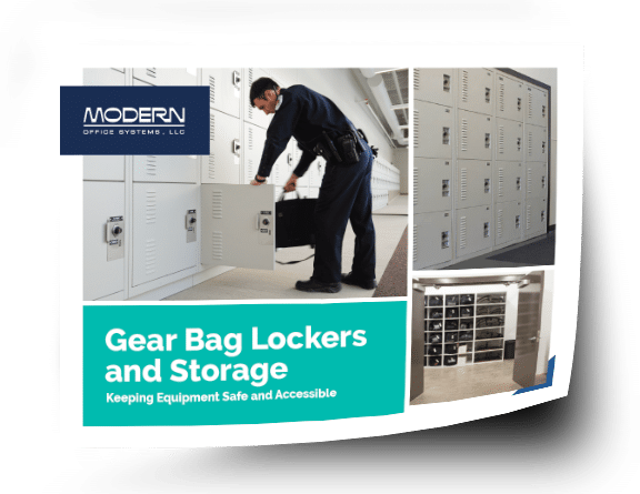 Creating convenience for police officers, gear bag lockers and rifle lockers can be designed together to create an efficient place to gather gear as they make their way to their patrol cars.