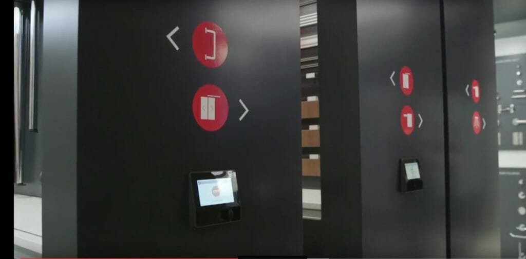 The client is thrilled with the system too. “It’s transformative,” Bengtson said. “You can be standing in one aisle, talking about small items like hinges, and then you simply press a button and walk two feet over and you’re talking about massive sliding architectural hardware. This system is a key element in our showroom, providing us the flexibility for transforming our space.”