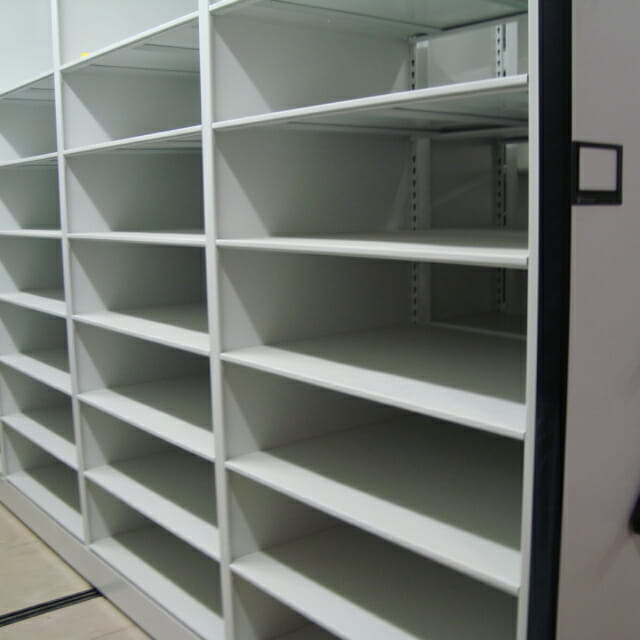 Above all, Modern Office Systems offers a turn-key service which includes access to our design department. A survey of your space and staff who are on the ground dealing with space solution issues daily helps define your specific needs. We then design the best possible high density storage solutions for your specific environment. Healthcare, Education and all Business Organizations can benefit from the utilization of high density storage; saving space and saving money. Furthermore, our options include our popular Mechanical-Assisted Mobile Shelving Systems . These systems allow movement through the use of a rotating handle and a safety locking pin that is used to stop the carriage from moving while someone is in the aisle. Other safety options are available.