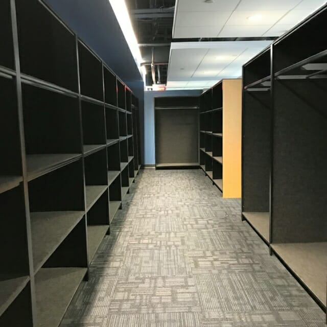 Designing office space can offer interesting challenges. We want to achieve it by instilling as natural a flow as possible throughout the area while still allowing for storage space that is both durable and aesthetically pleasing. Sometimes, the layout of the building can make storage solutions difficult. Modern Office Systems takes into account the architectural features that can make placing regular shelving units a challenge. We love a challenge!