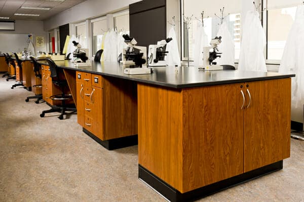 On-campus hospitals and clinics are typically smaller than the average public healthcare facility—and with smaller medical buildings come far less space for supplies. Efficient healthcare storage solutions can increase efficiency and organization, helping healthcare practitioners on campus spend more of their time treating students. Similarly, medical and science laboratories require workstations suited to their specialties. Utilizing ultra chemical resistant and durable phenolic resin work surfaces in laboratory casework helps meet safety and quality standards.